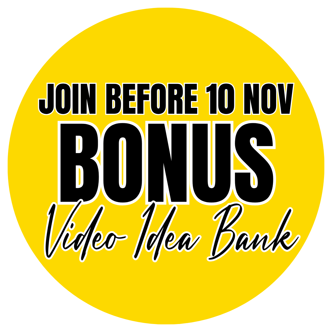 You’ll get community access (if you choose to also join the Facebook Group), live Q&As, and ongoing updates in the lesson library. If you want more hands-on help, you can add a Reel Ready session later for personalised on-camera coaching.